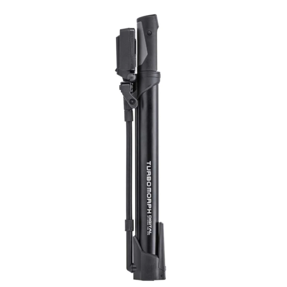 Evolutie van de bekroonde Morph pompserie – De Turbo Morph™ Digital is een vernuftige combinatie van stand-up en minipomp. Met de aan de bovenzijde gemonteerde, uitklapbare digitale drukmeter kunt u de luchtdruk nauwkeurig instellen tot 160 psi / 11 bar. De uitklapbare standaard en de flexibele slang zorgen voor een veilige stand en efficiënter en ventielvriendelijker pompen.